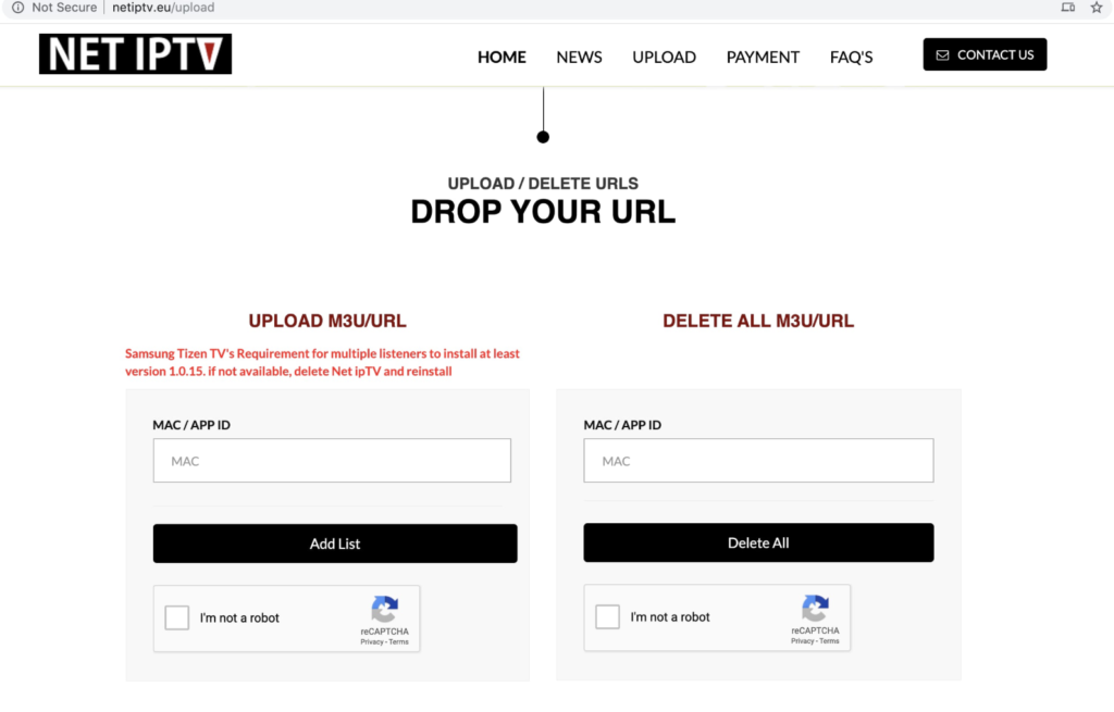 Go to the NET IPTV website. https://netiptv.eu/upload