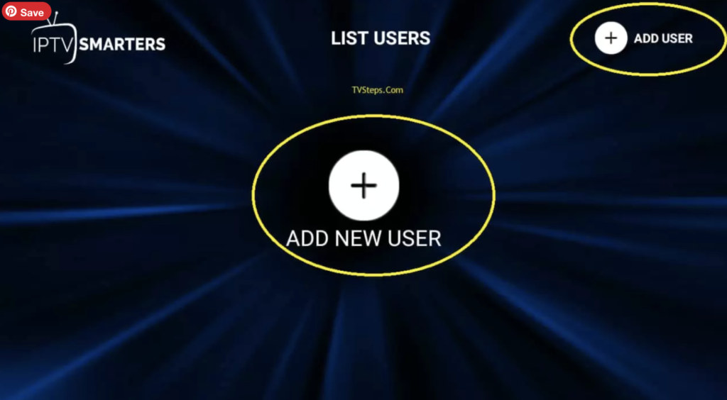 Click the + icon or select Add a user to set up IPTV Smarters Pro or the player.