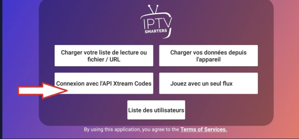 Select the connection option using the Xtream Codes API
