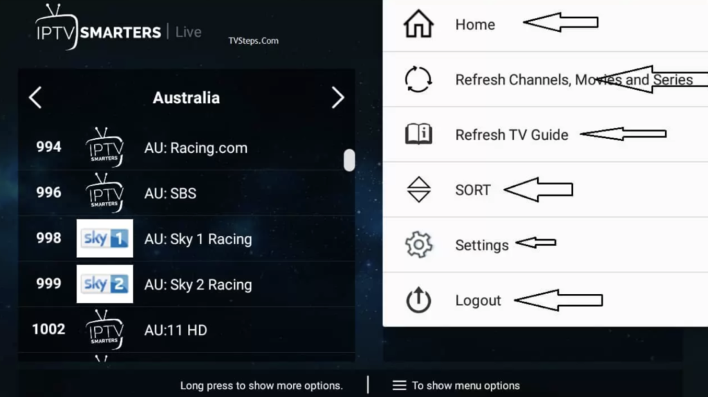 Options to use on IPTV Smarters / PRO